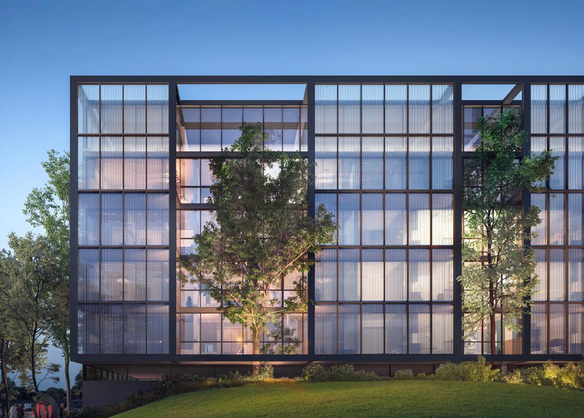 offering views of Aljada’s lush green landscaping. Modern design matches