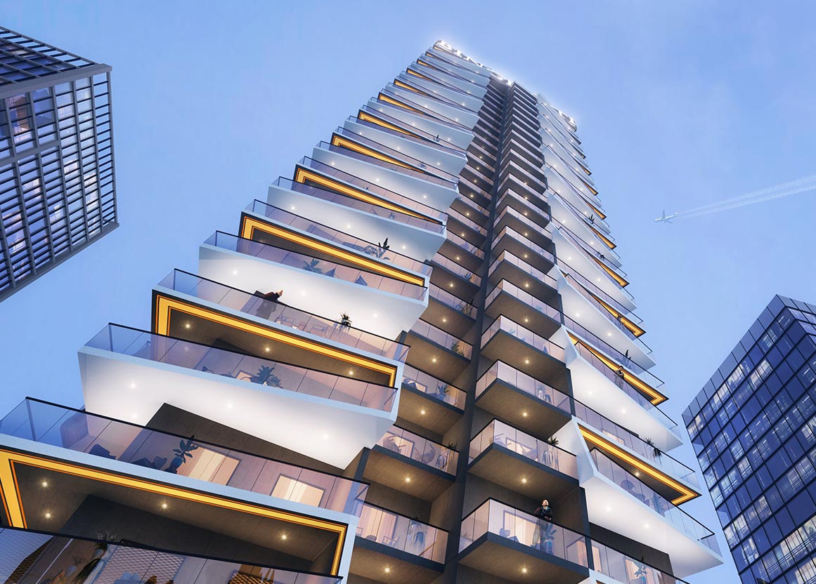 Binghatti Canal is a mixed-use project from Binghatti Developments that features studios and apartments with 1 and 2 bedrooms. Residences offer breathtaking panoramic views of the city, including the Burj Khalifa, Dubai Canal and Dubai Creek. The project project features a symbolic design with individual balconies interwoven together to form a unified community. Due to this interesting pattern, an illusion of the building's dynamic design has been created. The balcony design provides outdoor spaces for residents to enjoy and ensures a sustainable design by providing shade, which reduces the amount of energy required to cool the living spaces of the Binghatti Canal building.
