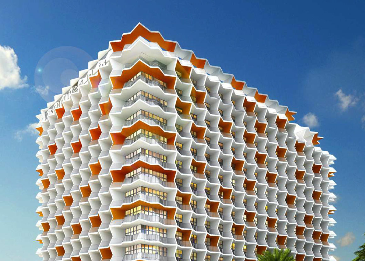 Binghatti Stars is a residential development from Binghatti Developers, which is located in the Dubai Silicon Oasis area. The building houses 15 floors and has an interesting facade exterior, and was fully commissioned in 2018. The exterior design of the complex includes white and orange colours, which is a consistent feature of the design throughout the projects by this developer.