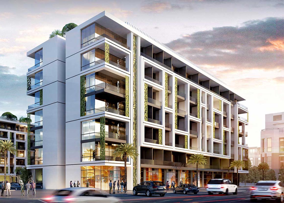 Endless amenities will be offered to residents of the eco-friendly development, including an anti-current swimming pool, a wellness center, a health club, a sauna, a gymnasium, an open air yoga and gymnasium platform, facilities for mini golf, a jogging track with rubber flooring and much more. Families with children will appreciate a family seating area, an open air cinema, a BBQ area, a shaded children’s playground with soft flooring, a children’s pool and a toddler splash pad. A business center, a kids day care, a male / female prayer room, a waiting lounge, a multi-purpose hall and other options providing residents with maximum comfort will also be available.