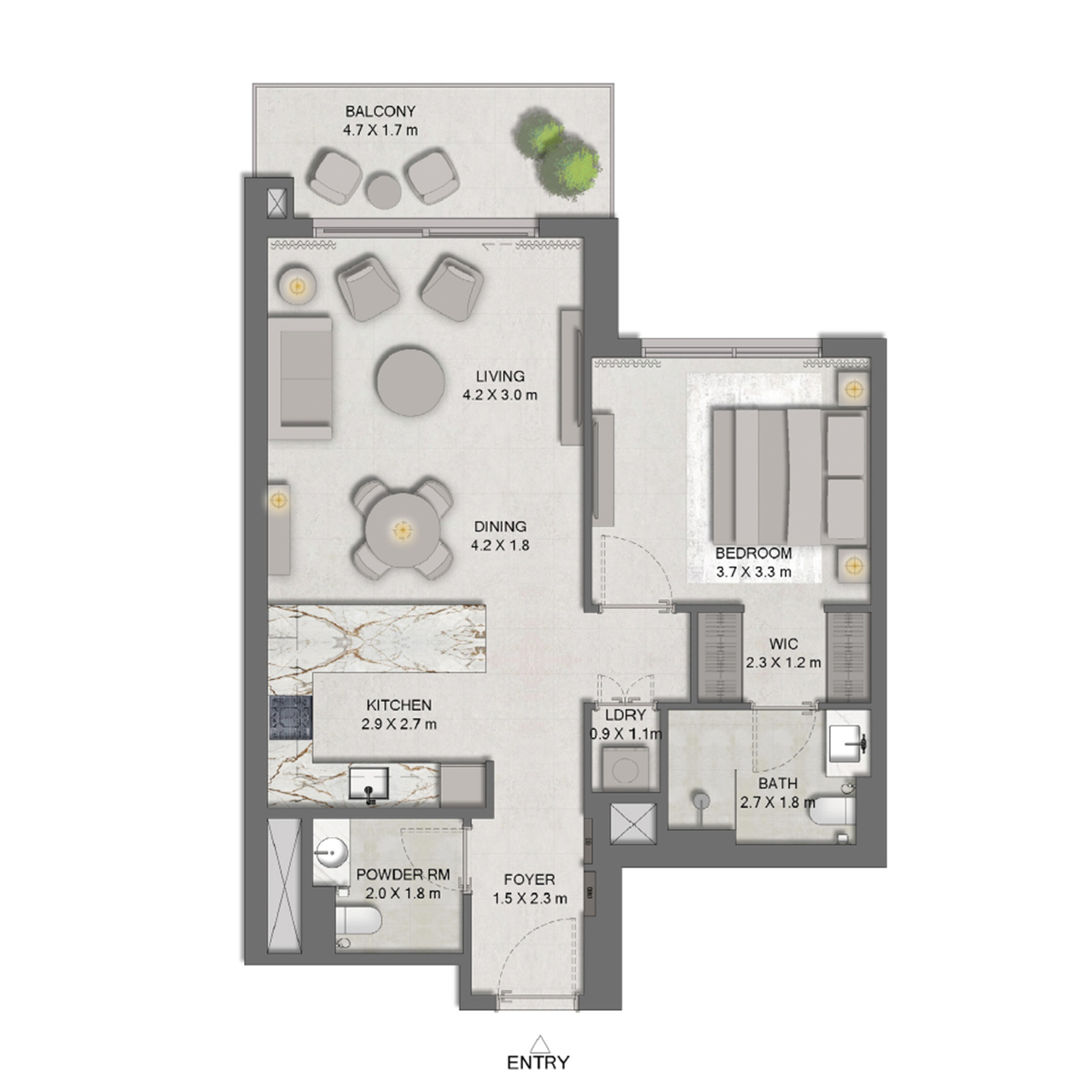 Residences at DISTRIKT (Buildings 3 & 4) include spacious 1–3 bedroom apartments and duplexes with select garden units and upper-floor layouts.