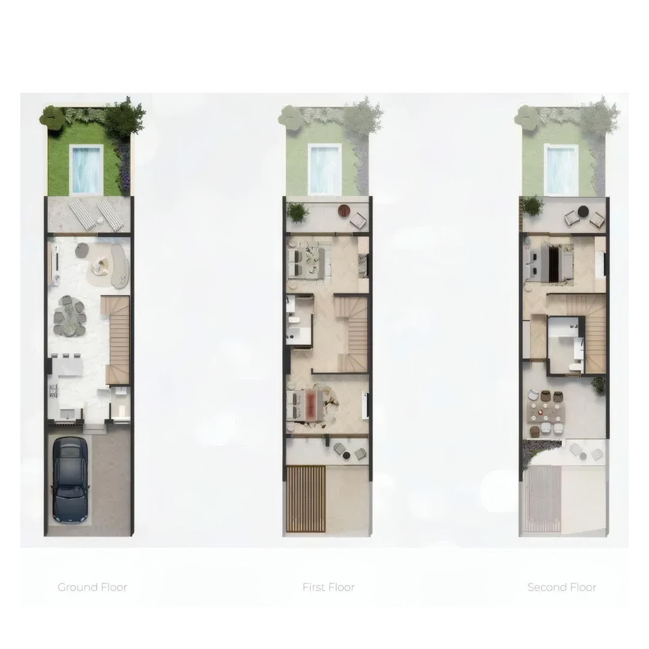 - Smart homes with elegant interiors and private gardens