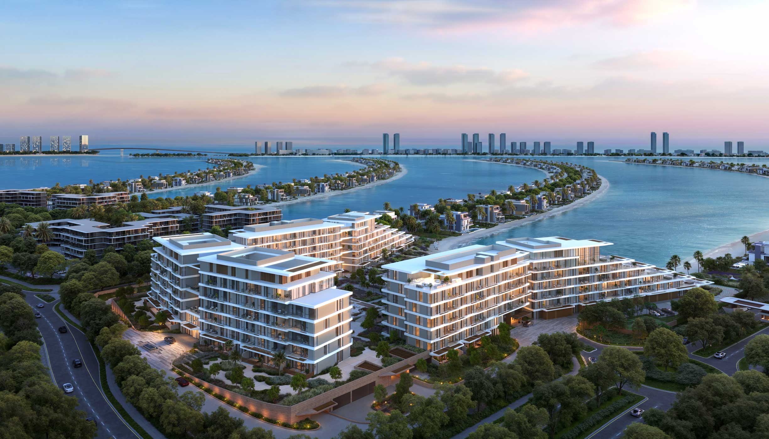 A resort-style apartment community on the Palm Jebel Ali Spine — elegant low-rise buildings with panoramic sea views with direct beach access.