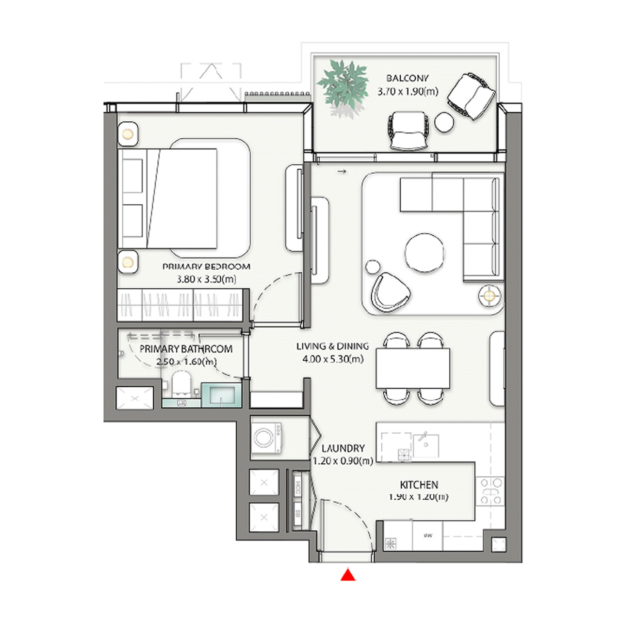 Residences range from 1-bedroom apartments of approximately 800 sq.ft to 2-bedroom layouts around 1,300 sq.ft, spacious 3-bedroom residences of about 1,900 sq.ft, and elevated 4-bedroom Townhouses (Beach Houses) measuring around 4,000 sq.ft with double-height living spaces and enhanced privacy. The two exclusive 5-bedroom penthouses span nearly 9,800 sq.ft and come with private garages. Select larger residences also include maid’s rooms, closed kitchens, and expansive terraces.