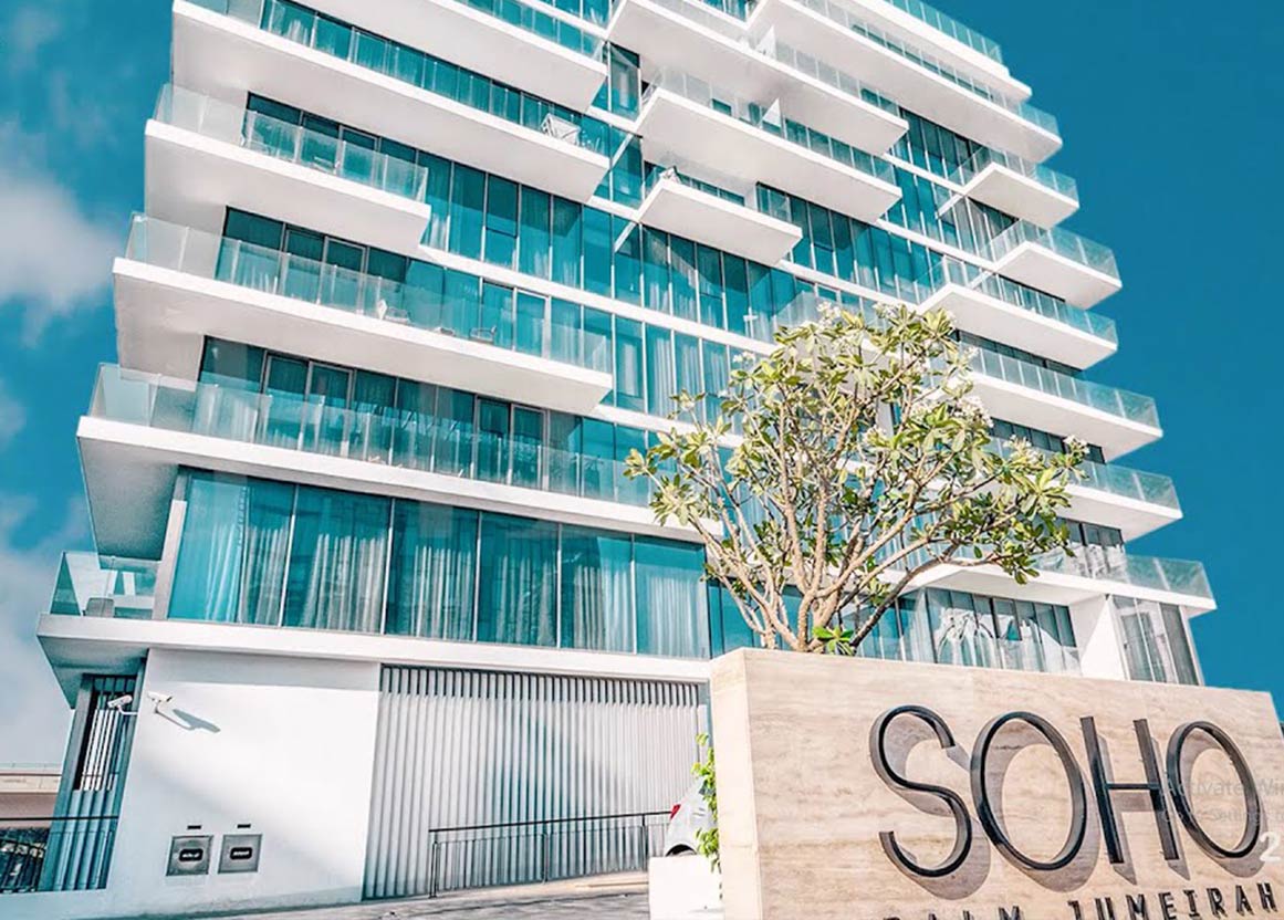 Soho Palm is a residential complex developed by NYC Holdings Limited. The construction was launched in 2014 and is located in the highly popular tourist destination of Palm Jumeirah, an artificial palm-shaped island. According to the developer, their goal was to create affordable high-quality homes for any type of buyer, as well as combining loft living that we see in the likes of Barcelona, NYC or London with the beach lifestyle of Dubai.