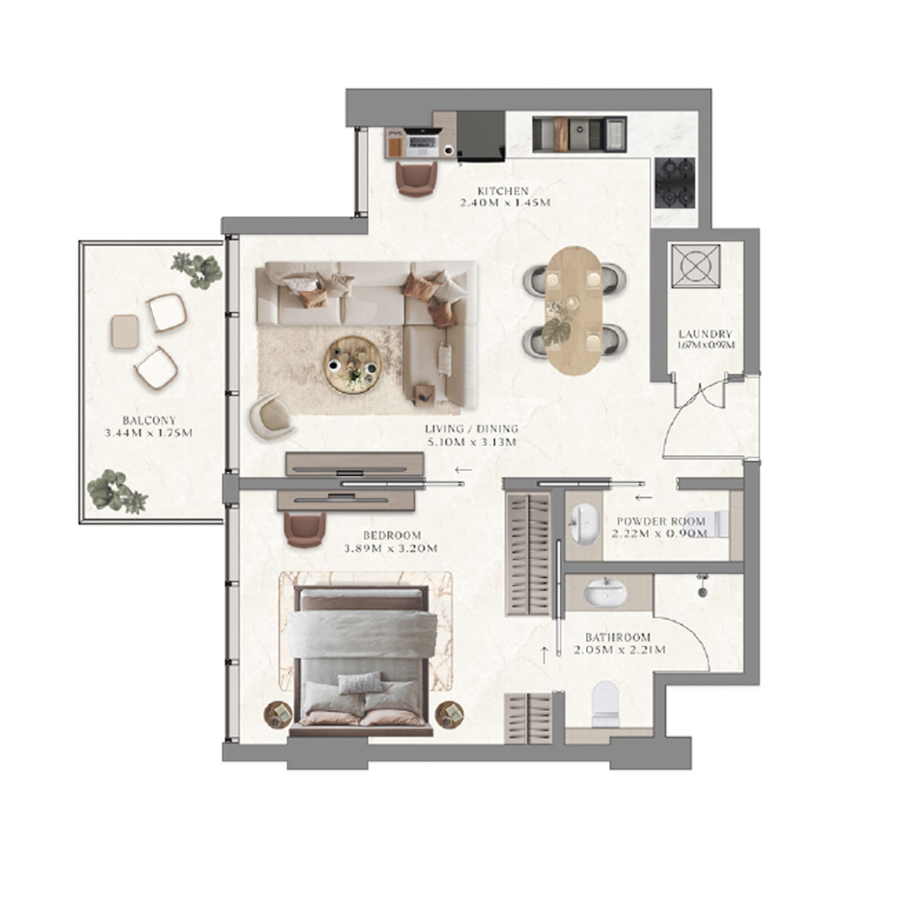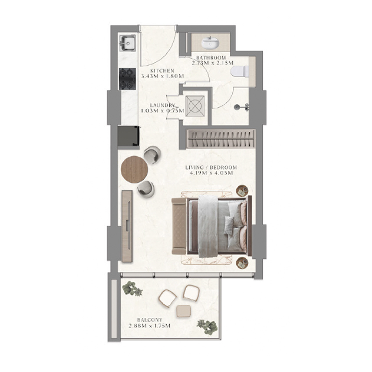 The Collection at Taiyo offers studios, 1-3BR apartments. Units are fully furnished with modern layouts, floor-to-ceiling windows, high-quality Bosch and European appliances, and select apartments featuring balconies or terraces with panoramic views.