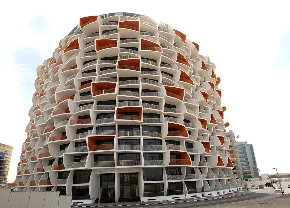 Binghatti Pearls – современный жилой комплекс на территории Dubai Silicon Oasis. 14-этажное здание привлекает внимание оригинальным внешним исполнением: фасад украшен элементами, напоминающими жемчужные раковины.